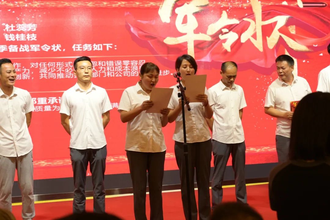 為有效推動(dòng)全江年度戰(zhàn)略目標(biāo)的實(shí)現(xiàn)所有部門負(fù)責(zé)人簽發(fā)旺季“備戰(zhàn)”軍令狀彰顯了他們對(duì)旺季工作的決心和信心相信在全公司各部門的共同努力下旺季工作取得圓滿成功為全江年度戰(zhàn)略目標(biāo)的實(shí)現(xiàn)打下堅(jiān)實(shí)的基礎(chǔ)!